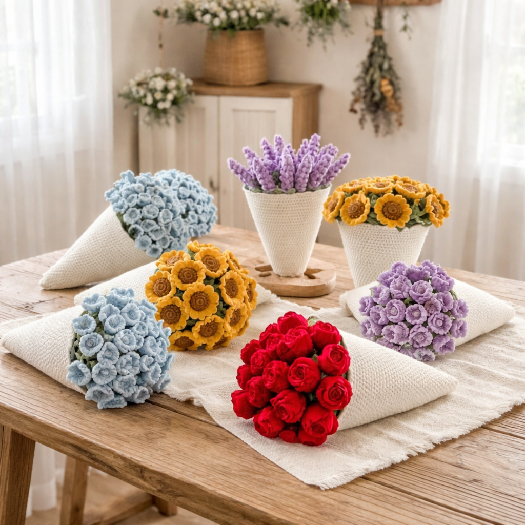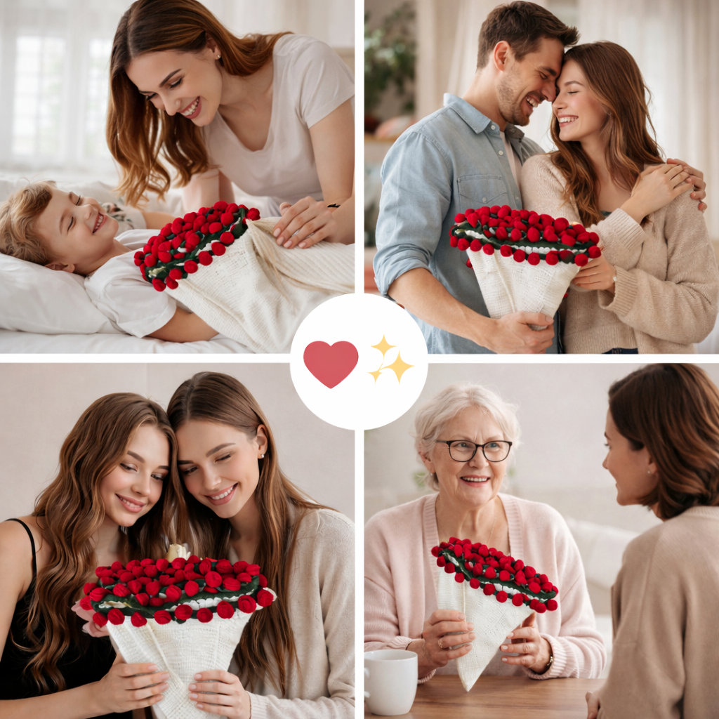 Each hand-knitted bloom is a lasting symbol of love, making your space feel warm, refined, and emotionally rich day after day, year after year.